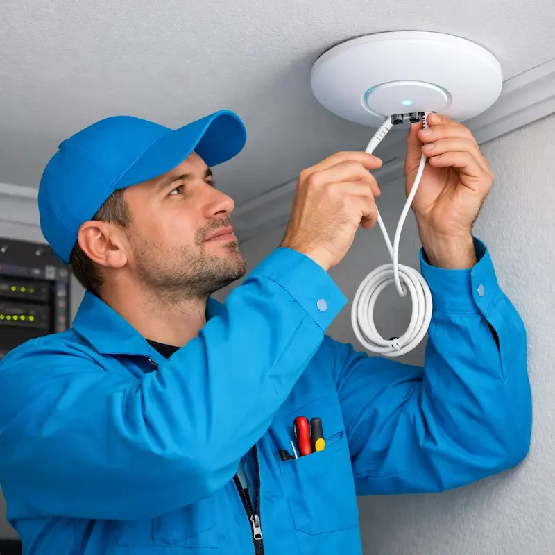 Мастер учитывает планировку помещения и особенности сети, чтобы Wi-Fi работал одинаково хорошо во всех зонах.